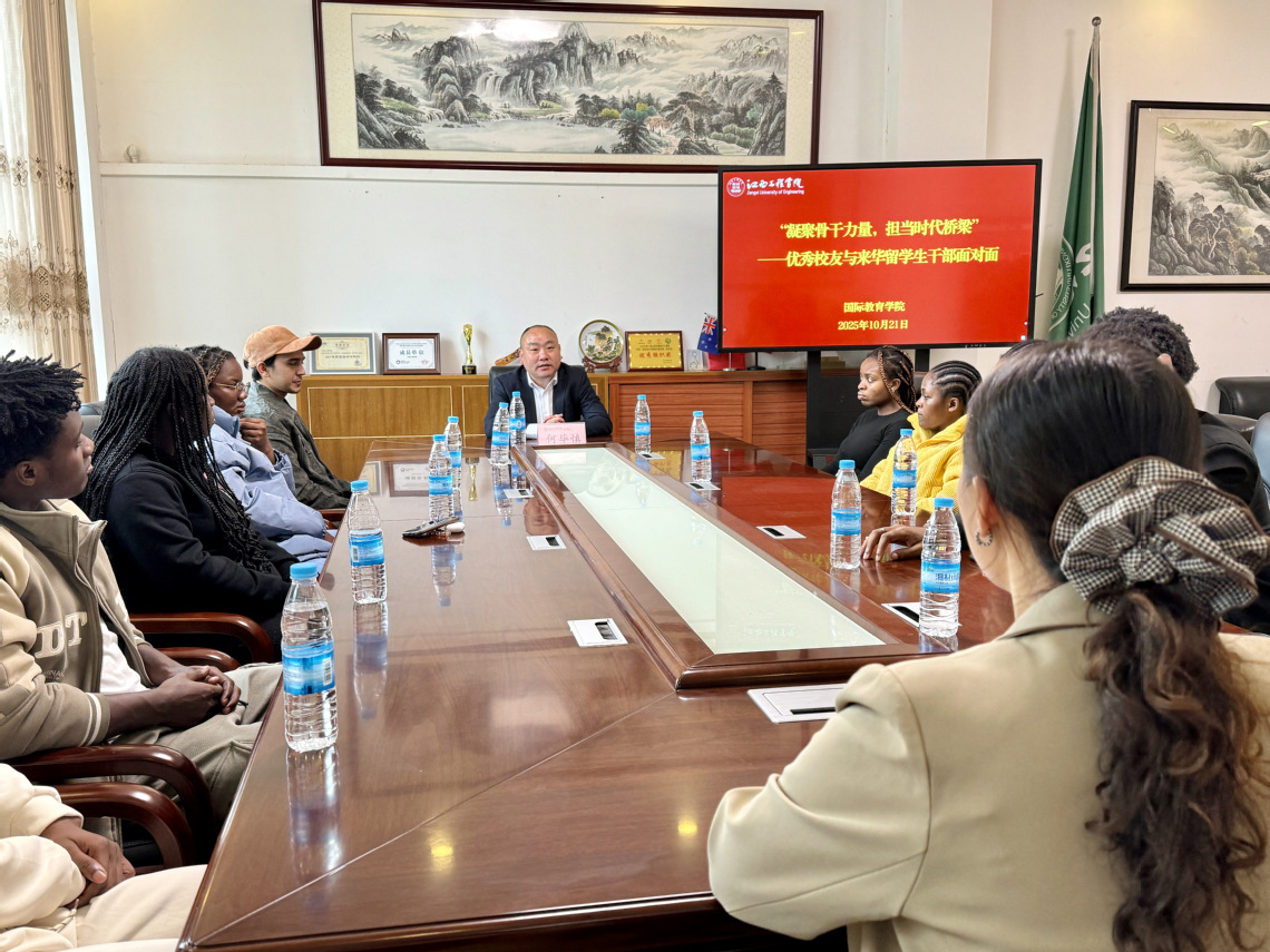 2025年10月21日,江西工程学院国际教育学院在国际合作与交流处成功举办“凝聚骨干力量,担当时代桥梁”——来华留学生干部与优秀校友面对面座谈会。活动特邀我校杰出校友何毕慎先生作为主讲嘉宾,与来自尼日利亚、巴基斯坦、卢旺达、加蓬、刚果和布基纳法索等6个国家的10名留学生代表展开深入交流。国际教育学院院长出席并主持座谈会,学院部分教师代表列席参与。