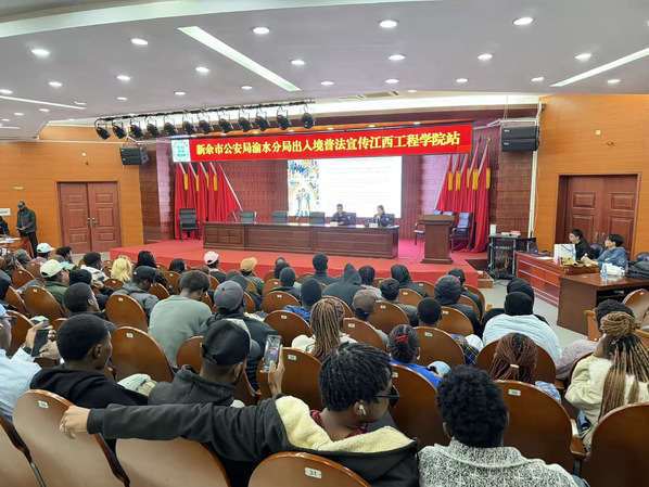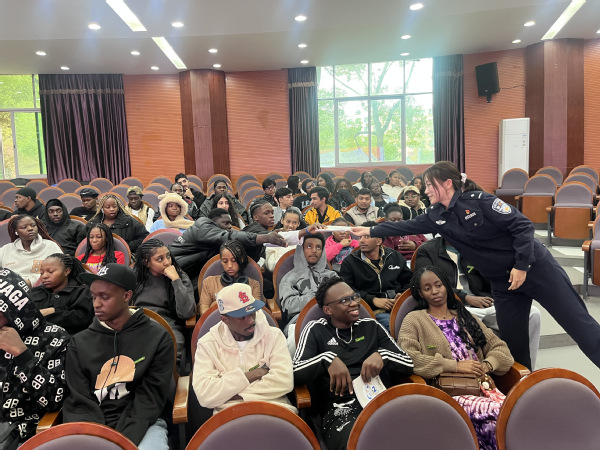 2025年11月6日,新余市公安局渝水分局民警应邀来到江西工程学院,为语言传播学院(国际教育学院)来华留学生举办了一场内容丰富、针对性强的普法宣传讲座。我校来自35个国家的180余名留学生,以及尼泊尔的外籍教师共同参与,语言传播学院(国际教育学院)副院长陈璐、国际合作与交流处副处长徐小平共同出席了此次活动。