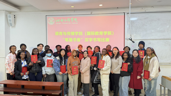 2025年11月21日下午,江西工程学院语言与传播学院(国际教育学院)在国际合作与交流处一楼多媒体教室成功举办来华留学生笔墨中国汉字书写大赛。本次活动由学院副院长陈璐主持,汇集了来自10余个国家的30余名留学生同场竞技,以汉字书写为媒介,搭建起促进文明互鉴的文化桥梁。