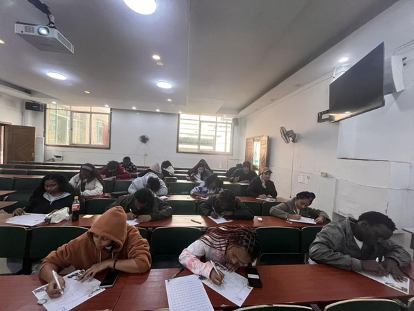比赛吸引了来自巴基斯坦、坦桑尼亚、尼日利亚、孟加拉国等十余个国家的三十余名留学生参与。下午两点半比赛正式开始,现场迅速安静下来,留学生们专注书写,笔尖划过纸面,留下工整而有力的字迹。来自巴基斯坦的阿里书写月字,结构匀称、笔画流畅,展现出扎实的练习基础;刚果学生森吉则书写《春晓》诗句,字形清秀工整,赢得老师好评。尽管不少学生接触汉语仅数月,但他们认真书写的态度和对汉字文化的热情感染了在场的每一个人。